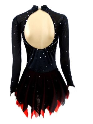Black Red Figure Skating Costumes – Custom Made Skating Skirts & Long Sleeve Ladies’ Costumes