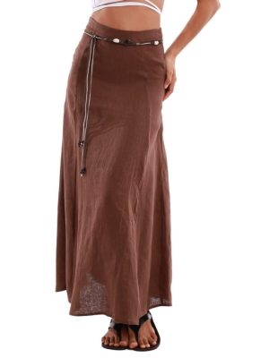 Women’s 100% Linen A-line Maxi Skirt with Matching Belt Summer Casual