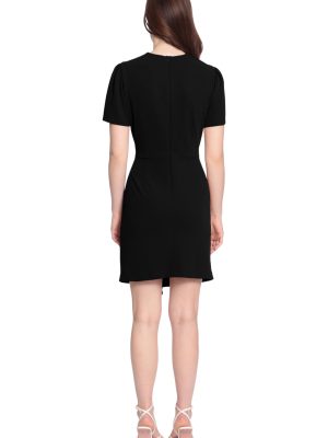 Women’s Sleek Faux Wrap Dress with Asymmetric Skirt Office Workwear Event Guest of