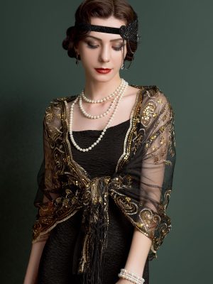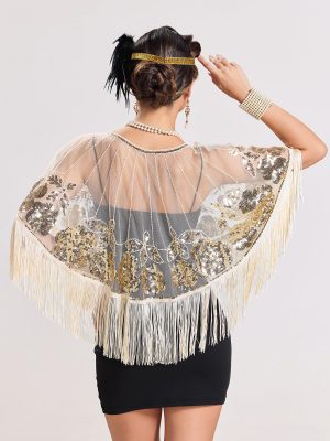 1920s Women’s Shawl Wraps Sequin Beaded Bridal Shawls Flapper Evening Cape