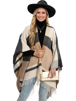 Women’s Knit Shawl Wraps, Knitted Poncho Cape Open Front Cardigan Sweater with Tassel for Spring Fall Winter