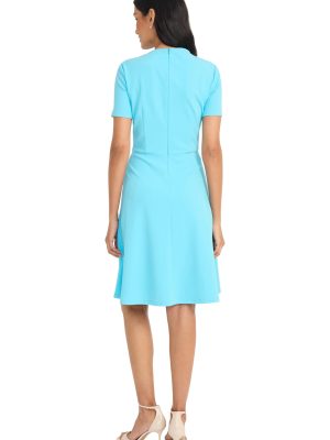 Women’s A-line Short Sleeve Gathered Neckline Knee Length Business Casual Cocktail Wedding Guest Dress