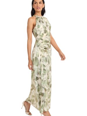 Women’s Ruched Waist Halter Neck A-line Maxi-Ankle Length Special Occasion-Formal Evening Dress