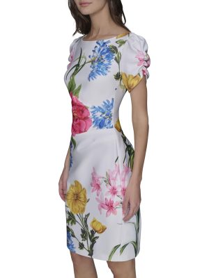 Women’s Short Ruched Sleeve Jewel Neck Sheath Mini Dress