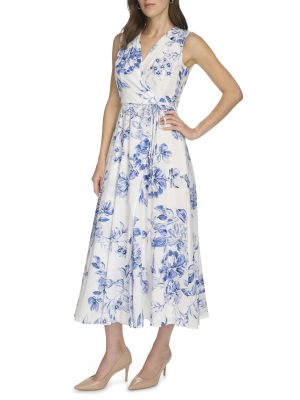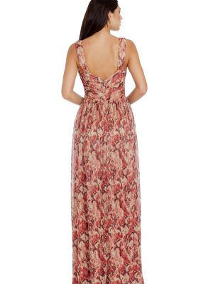 Women’s Sleeveless Mock Neck Maxi Elegant Floral Print for Wedding Guest-Versatile Formal Dresses