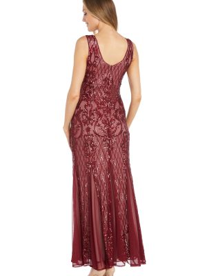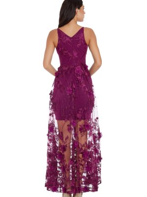 Women’s Embellished Plunging Gown Sleeveless Floral Long Dress
