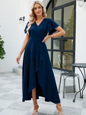 Womens Chiffon Dresses Flutter Sleeve Party Wedding Cocktail Dress Size 8-20