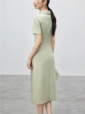 Women’s Solid Polo Shirt Dress Summer Short Sleeve Split Cinched Waist A-Line Midi Dresses