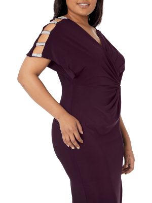 Women’s Long V-Neck Knot Front Wedding Guest Dress with Cold Shoulder Sleeves (Petite and Regular Sizes)