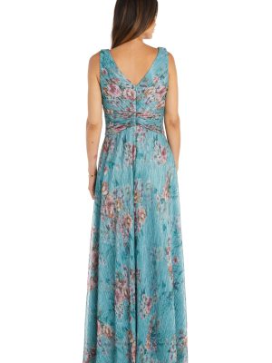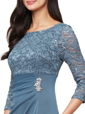 Women’s Long Mother of The Bride Dress with Stretch Lace Bodice & Hip Embellishment (Petite and Regular Sizes)