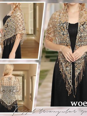 Women’s Long Sequin Shawls 1920s Scarf Mesh Glittering Wedding Cape Fringed Evening Wrap Formal Harlem Night